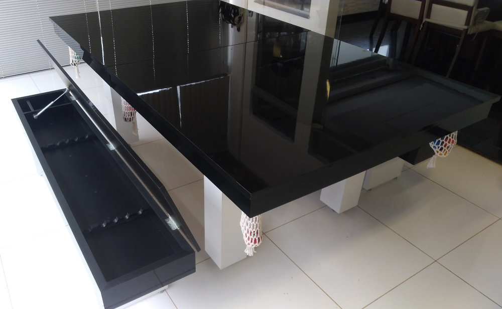 Mesas residenciais e amadoras, com acabamento impecável e materiais de primeira linha.